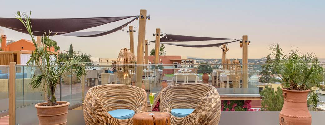 The luxurious resort is situated on a beautiful hill just 800 metres above the coasts of Hersonissos, overlooking long sandy beaches and a raw, unspoiled landscape with century-old olive groves.